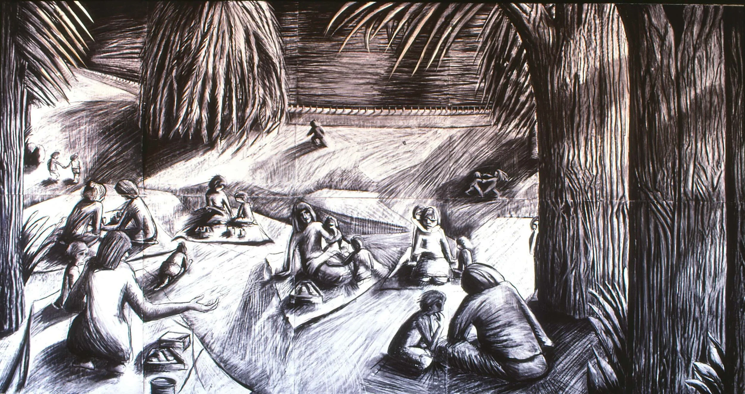 All the drawings that evolved from that semester trip and then the ensuing years of expanding dimensions gave birth to the massive charcoals I became known for, extending over studio walls, onto the ceiling, and into paper mâché sculptural trees. A world grown from a journey. A world of recognition that culture defines experience, that my ideas of being a woman were different than the ideas of my Japanese women friends, that my ideas about what matters were entirely different than the whole world I was enveloped by in Kyoto.